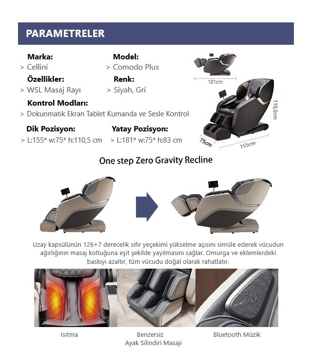Cellini Comodo Plus masaj koltuğu yeni 3D masaj makaraları ile benzersiz bir masaj sunmasıyla birlikte eşsiz tasarımı ile de evinize estetik katar.