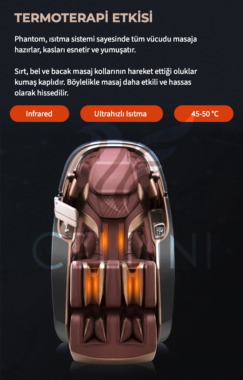 Cellini Phantom Vip Masaj Koltuğu’nun Derin Doku Masaj Sistemi o kadar etkili ki, en inatçı kas sertlikleri bile giderildikten sonra yepyeni bir insan gibi hissedeceksiniz.