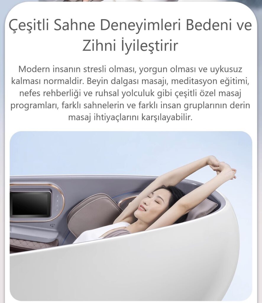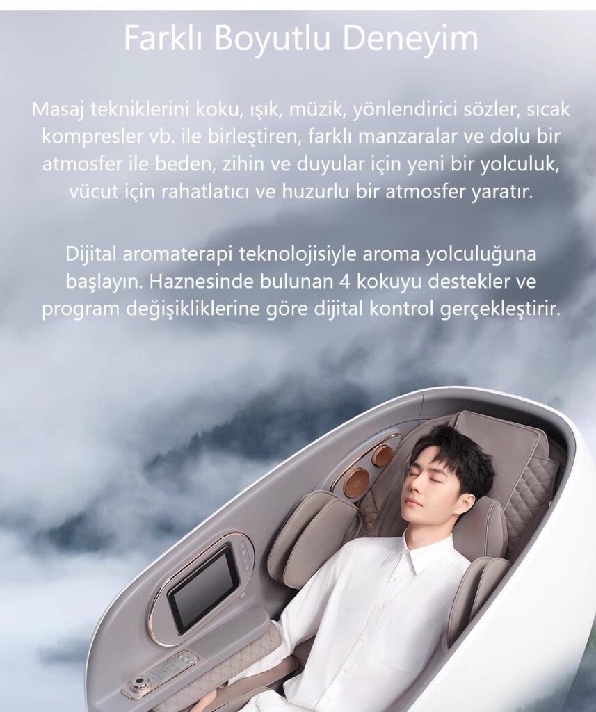 27 yıllık tecrübesi ile dizayn ve teknoloji olarak dünyanın en beğenilen masaj koltuklarına sahiptir. Model çeşitliliği renk alternatifi ve güçlü stoku sayesinde başta Avrupa ve Ortadoğu olmak üzere dünyanın birçok ülkesine ihracat yapmaktadır. Hizmet kalitesini korumak amacı ile sadece kendi mağazalarında müşterilerine ulaşmakta olup Türkiye çapında servis hizmeti vermektedir.