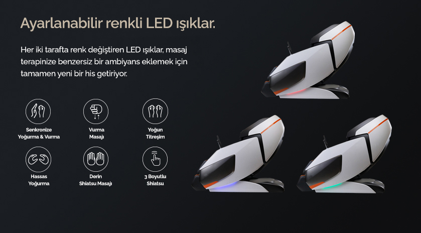 Her iki tarafta renk değiştiren LED ışıklar, masaj terapinize benzersiz bir ambiyans eklemek için tamamen yeni bir his getiriyor.