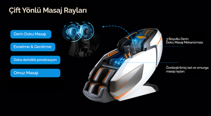 Alt masaj rayları 150MM uzunluğa sahiptir ve çift yönlü esnetme masajı uygular.